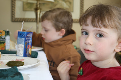 So today was Owen's last day of school before Christmas break. Owen's friends Connor and Sean came over to have lunch together and have a gift exchange.